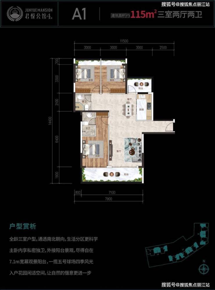 A1:115㎡ 3房2厅2卫