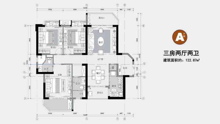 10、户型产品:101.16㎡-122.87㎡2-3房