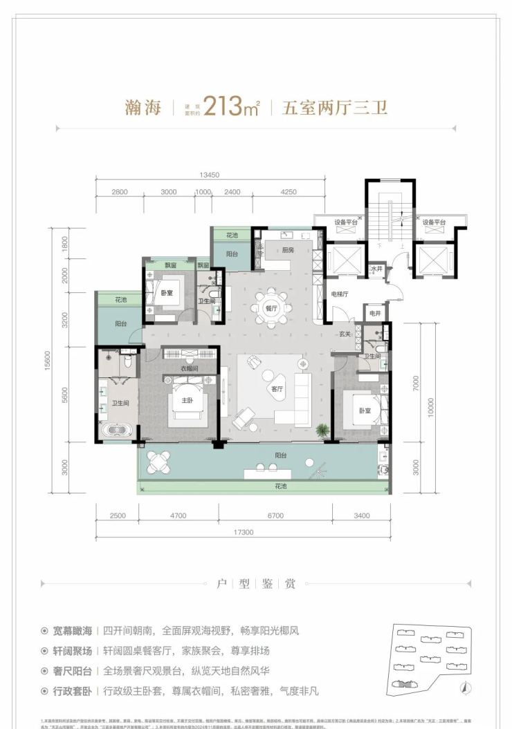 同样为五居室,建面约213㎡户型