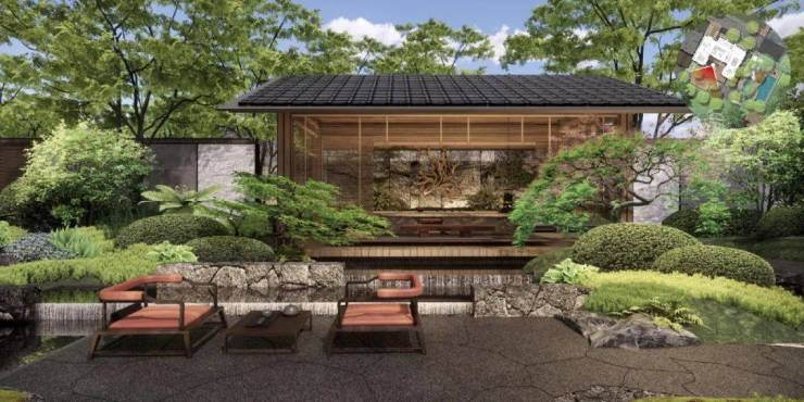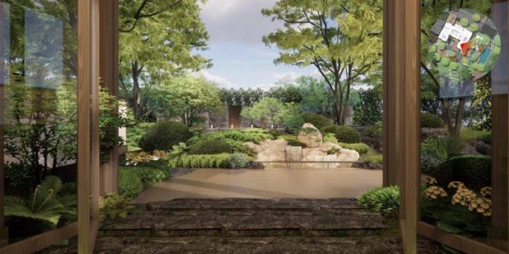 园林设计以杭州法云安缦为蓝本,师法自然、禅意幽远。悉心挑选 40 种热带特色植被,葱郁繁茂、四季繁花。更珍视原地块 4 棵百年古树,以此为核心景观节点,古木参天、岁月沉淀,与新植交相辉映,构筑宁静深邃、自然野趣的园林画卷,让每一步归家皆为穿越诗意秘境的悠然旅程。