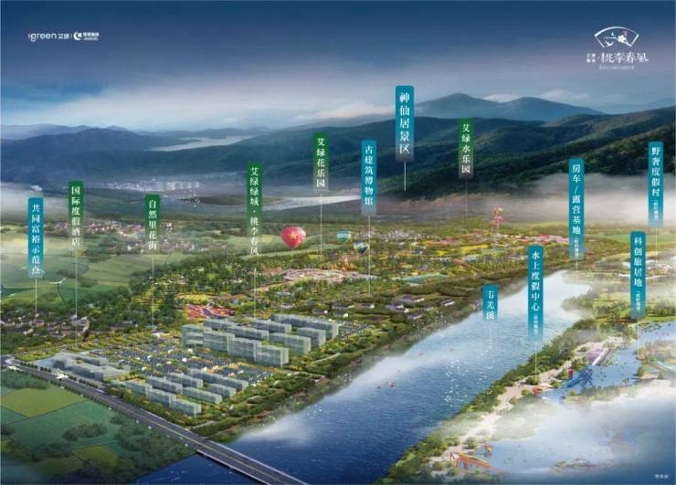 项目由全域生态文旅投资运营商艾绿集团携手美好生活服务商、中国高端物业筑造品牌绿城共同打造。项目规划约850亩艾绿花乐园+水乐园,国际度假酒店,自然里花街等配套,实现集聚文旅度假、文创休闲、商业消费、颐养居住等于一体的芳香度假小镇。更以绿城TOP系桃李春风社区,打造山水胜境中的东方世家生活。