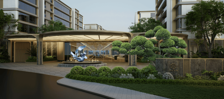 景观以“八景造园”为核心理念,将热带原生植被与东方造园手法相融。社区内规划溪谷花境、阳光草坪、叠石水景等八大景观节点,搭配凤凰木、三角梅等本土花木,四季有景、步步生趣。