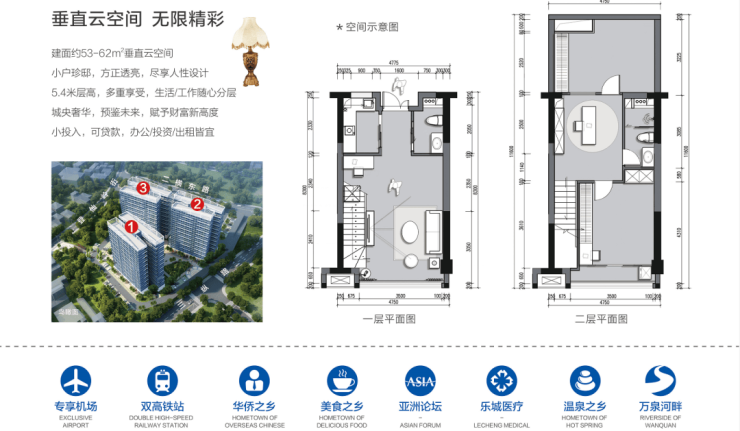 2号户型:62方 LOFT5.4米买1层享两层