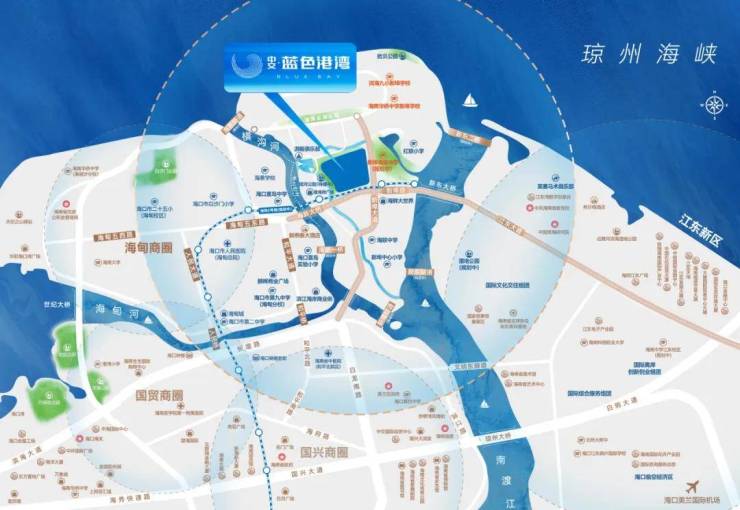 中交·蓝色港湾落子海口市新埠岛中芯地带,作为海口市真正的“入海口”之心,这里西面链接着繁华的海甸岛与主城区,向东扼守自贸先行示范区江东新区门户,三面临江一面望海,作为联系海口市主城区与江东新区的重要功能组团,未来将建设成为“一个开放自由、创新集聚、彰显时代活力与海岛魅力的国际创新自在岛”。