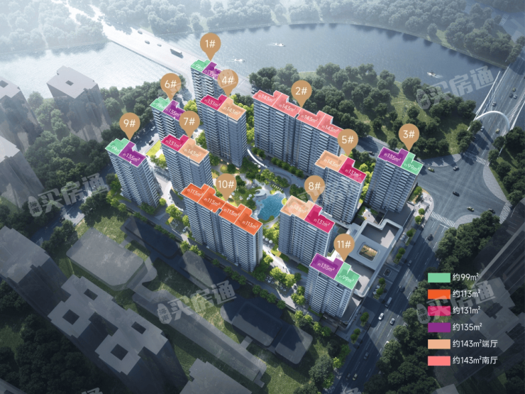 户型建筑面积约99-143平米,户户均拥有独立全明电梯厅,且可用面积约为109-163平米,是第四代高得房光幕奢宅。