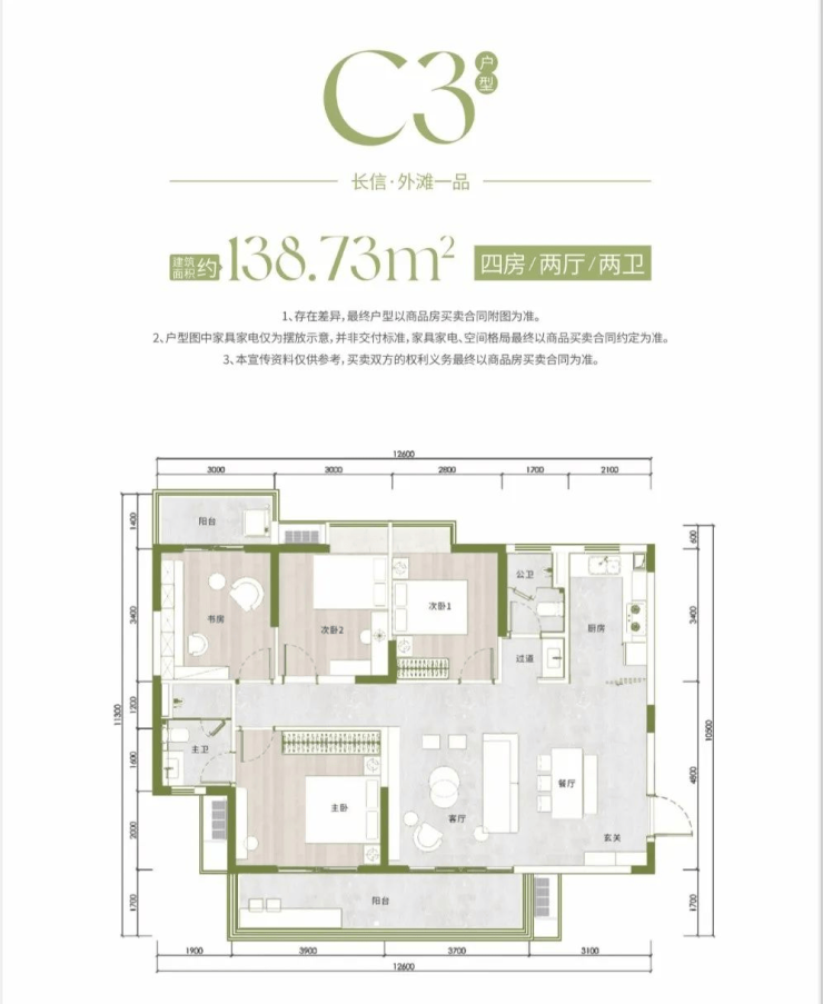 长信•外滩一品占地面积约29.77亩,总建筑面积约272593.02平方米,规划户数345户,车位充足。楼盘提供多种户型选择,包括三居室和四居室,面积在107至139平方米之间,能够满足不同家庭的需求。户型设计合理,空间利用率高,居住舒适。