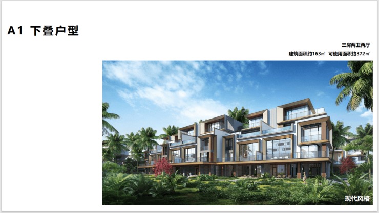 下叠建筑面积163㎡,3F2T3W,赠送209平米(含地下车库面积86平米,架空层庭院面积83平米,阳台30平米),共4层(负一层车库,首层,二楼,三楼),别墅地下车库以及首层层高3.9米,二楼三楼卧室层高3.3米,客厅挑高4.6米