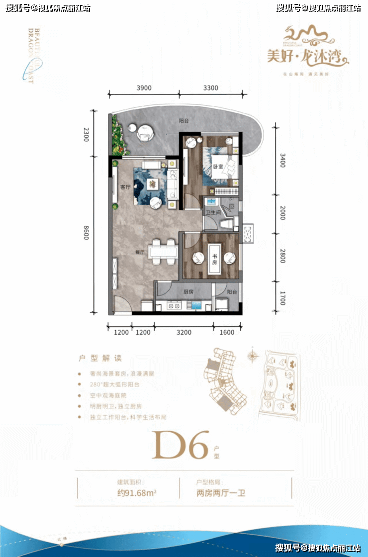奢阔海景套房,浪漫满屋;207°超大弧形阳台;空中观海庭院;明厨明卫,独立厨房;独立工作阳台,科学生活布局