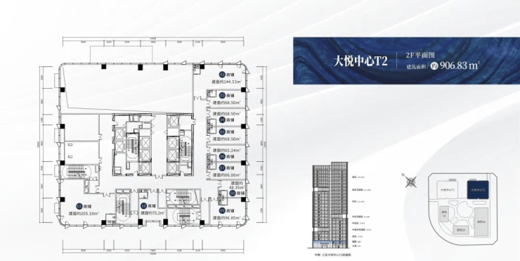 大悦中心T2,创梦之翼,高度100米,共23层,总建筑面积约3.5万㎡,其中2-4F为商业写字楼。
