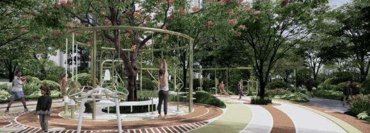 规划围合式超大央景花园、超 500㎡阳光泳池、全龄架空层,营造社区活力生活场景。