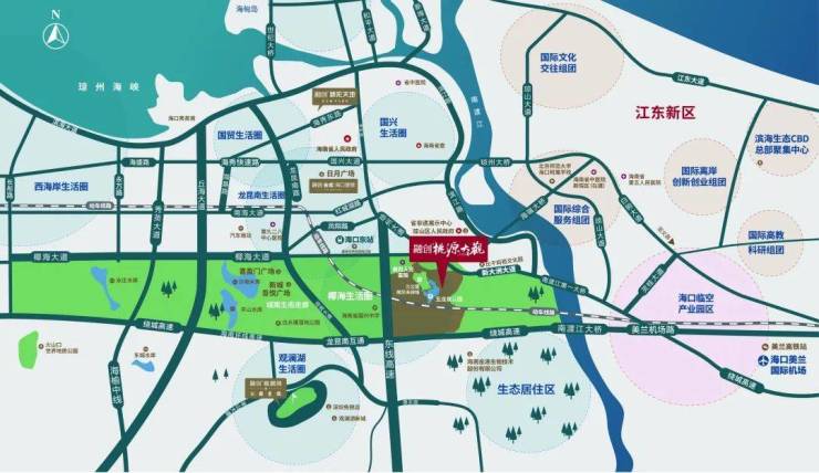 项目位于海南省海口市人文发源地琼山区滨江新城板块,北接龙昆南生活圈、南望生态绿肺走廊、西临椰海生活圈,东邻江东新区。