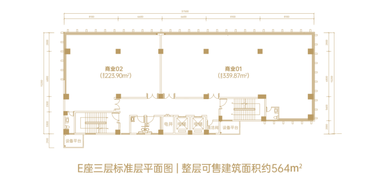 整栋出售,建面约3374㎡,标准层层高3.8米