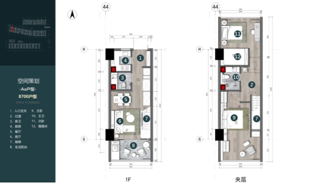 Aa户型:建筑面积约58㎡,套内面积约90㎡