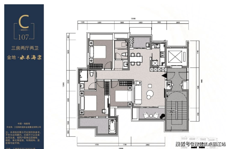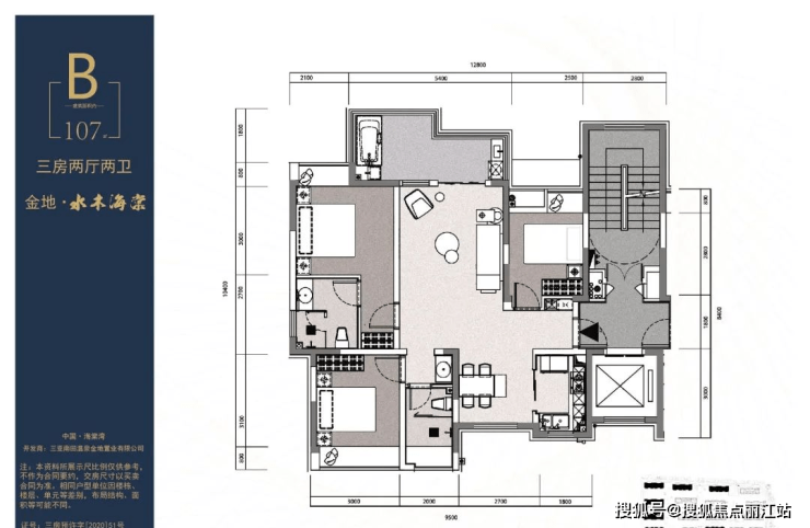 B户型107㎡三房二厅二卫