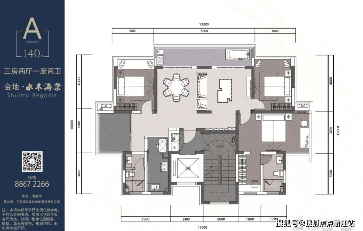A户型140㎡三房二厅二卫