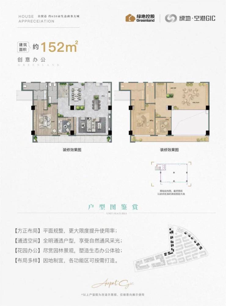 绿地空港GIC,建面约43-150㎡定制创办空间,灵动布局,各功能区均可实现;好房好价年终冲刺,抢占起飞型空港资产,轻松入驻自贸芯。