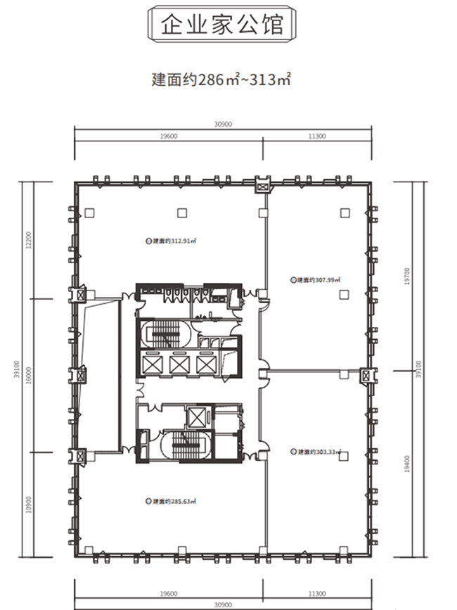 总裁会客厅规划建面约286-313㎡产品