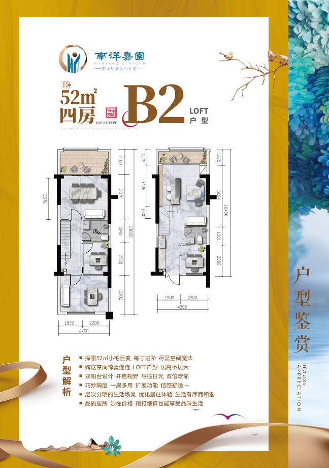 B2户型 LOFT 约52㎡ 四室两厅两卫