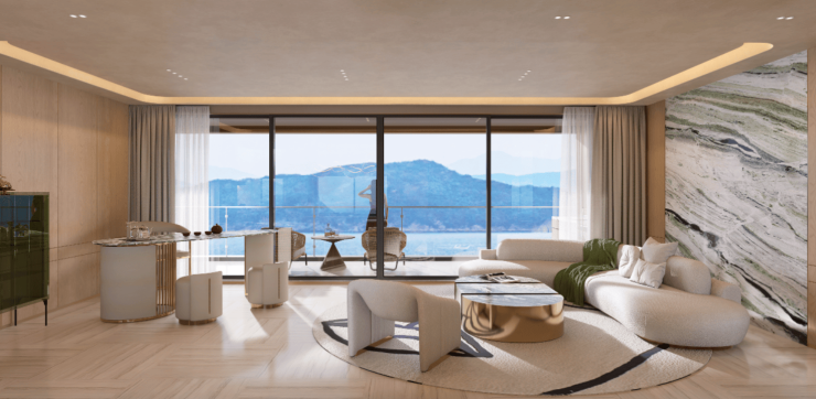 约9-12.5米超阔巨幕阳台系统,与宽厅及全景落地窗,共同构建出融合观景、社交与休憩的复合场域。
