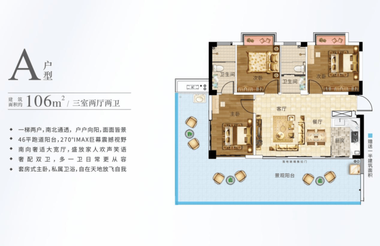 ◎建面约105-106㎡/实得约128-129㎡