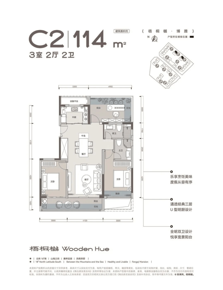 :科学布局,U 型明厨功能齐全。两梯两户设计,保障了业主的居住私密性。宽奢横厅灵动百变,搭配三阳开泰的飘窗设计,让室内采光充足,舒适奢居,动静分区合理,为业主打造一个安静、舒适的居住环境。