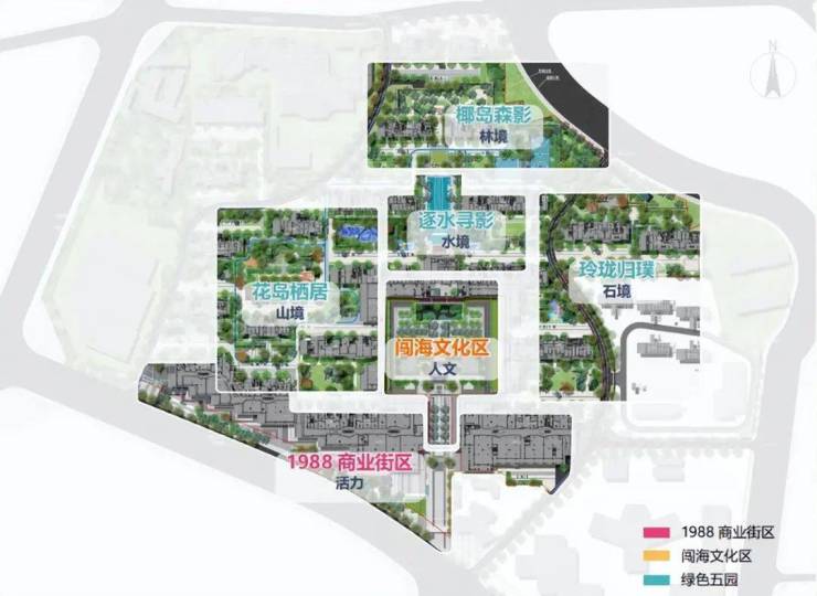 景观规划设计:一轴两带、三场五园