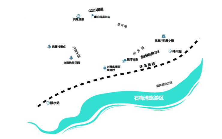 距海口三亚车程在1小时内,神州高铁站车程10 分钟