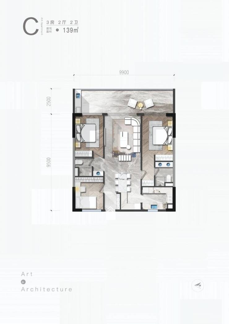 C户型/3房/2厅/2卫/139㎡