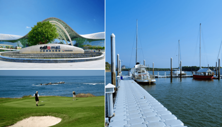 海棠湾国际免税城,清水湾游艇会,鉴湖蓝湾滨海高尔夫球会及三大高尔夫球会(滨海林克斯球场、丘陵地貌球场);