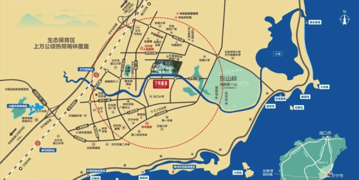 项目距万宁市文化体育广场仅50米,该体育广场是海南省2016年重点项目,包括图书馆、展览馆、群艺馆、青少年活动中心及万安书院,既是体育馆又是公园。