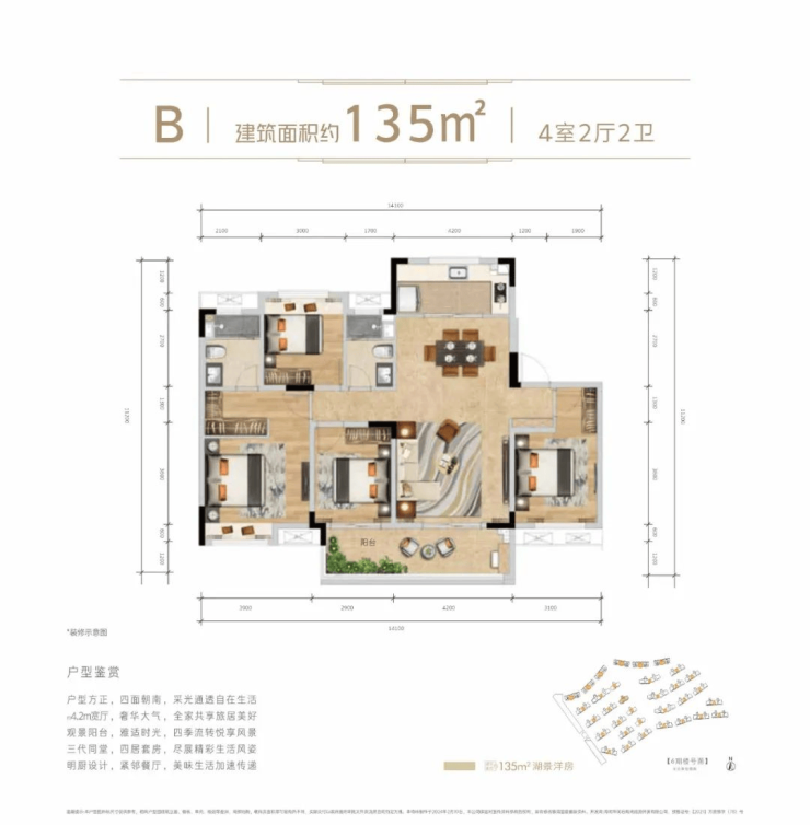 湖景洋房:建筑面积约108-135㎡