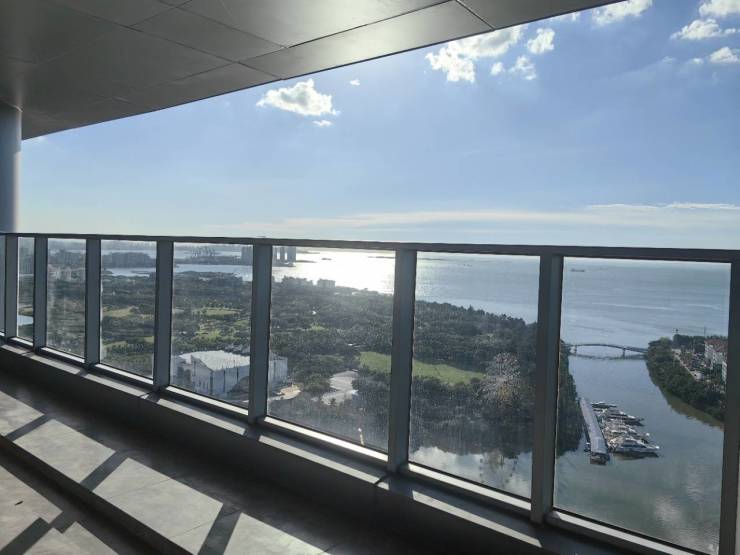 延续全球顶尖设计团队匠筑,海口中海国际中心采用半隐框玻璃幕墙技术,形成大面积全玻璃镜面,搭配造价不菲的双层LOW-E超白玻璃幕墙,不仅外观高级,与滨海商务场景完美契合,且坚固防震、隔音保温性能更为突出。