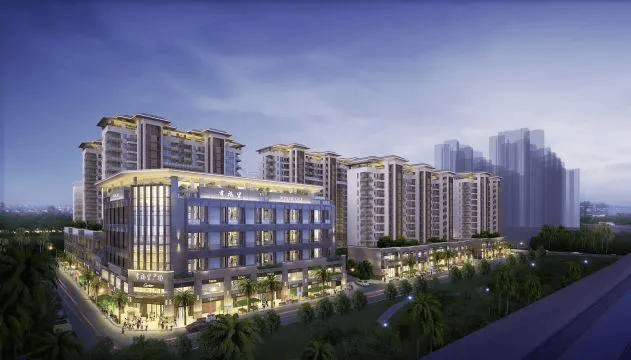 近揽东岸总部中央商务区、乐天城综合体、鸿港新贸城、海旅免税城等商圈,项目西北侧在建亚沙会体育中心,总部办公、商业、酒店、影院、体育赛事等高规格醇熟配套一应俱全。