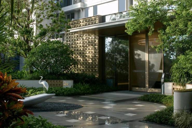 项目建筑密度低于10%,所以拥有足够的空间打造公共区域。设计团队巧妙地将高层建筑的底层架空,并通过风雨廊相连,有效地模糊了空间与自然景观之间的界限。自然形成的底层大花园成为了业主社交的绝佳场所。