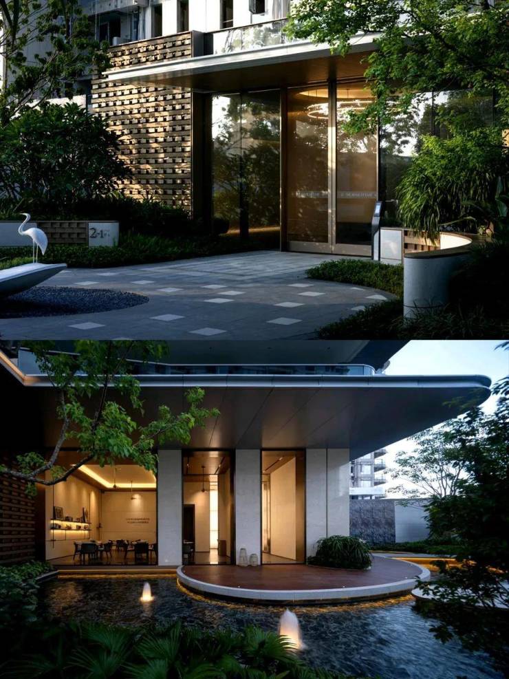 项目建筑密度低于10%,所以拥有足够的空间打造公共区域。设计团队巧妙地将高层建筑的底层架空,并通过风雨廊相连,有效地模糊了空间与自然景观之间的界限。自然形成的底层大花园成为了业主社交的绝佳场所。