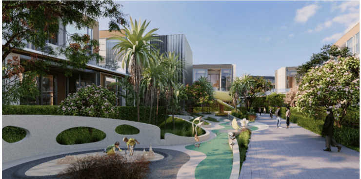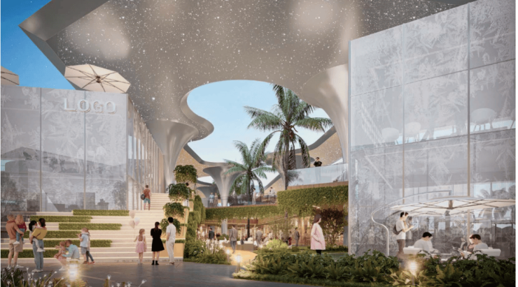 商业街区设计,设计概念取境“微风缦岛,热带凉意”,旨在构建一处开放式、沉浸式滨海人文艺术商街,以“浮岛市集”为形制,营造出海洋里的温馨港湾,以潮流商业链接自然底色,带给清水湾更多新鲜姿彩。