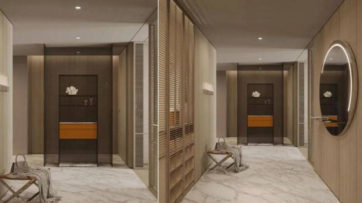 从车库出入口到入户门口,全链条打造入户归家体验,设计材料、手法、语言与整体大货融合统一,打造具有品质、度假氛围的入户归家动线;