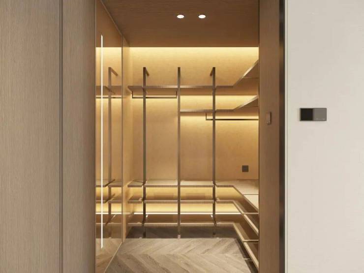 独立卫浴空间,借鉴了高端酒店的设计风格,采用相互独立的双台盆设计,彼此陪伴但又保持适度的距离。贴心配置智能浴缸,当夜幕降临之时,浴缸里来一次身心浸泡,静静眺望窗外的夜色,享受属于自己的片刻时光。淋浴房设计,摈弃臃肿挡水条,极窄边框的玻璃隔断,实现了空间通透感的最大化。严选天然石材墙面,淋浴屏地面抽槽工艺,每一个细节都沉淀着对精致生活的巧思。