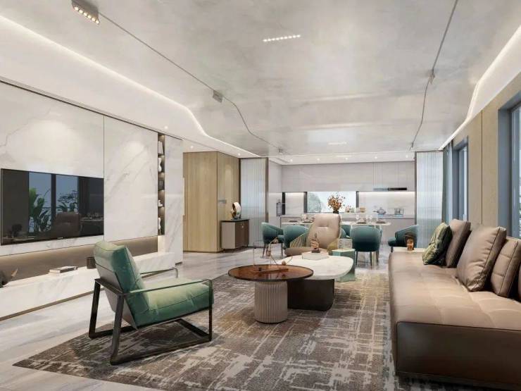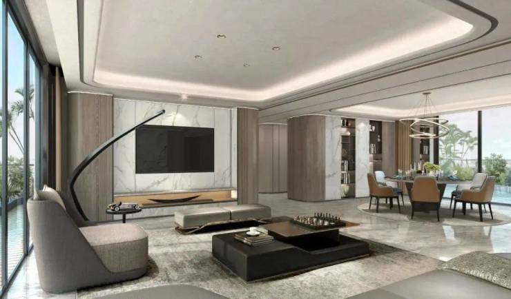 佳元·江畔锦御对于家的美学空间思考,是基于人对视觉的第一触感。在约270㎡样板间中,以游轮度假设计语汇为基础,通过各具型格的设计手法,让空间拥有了更为多元和丰富的表达形式。