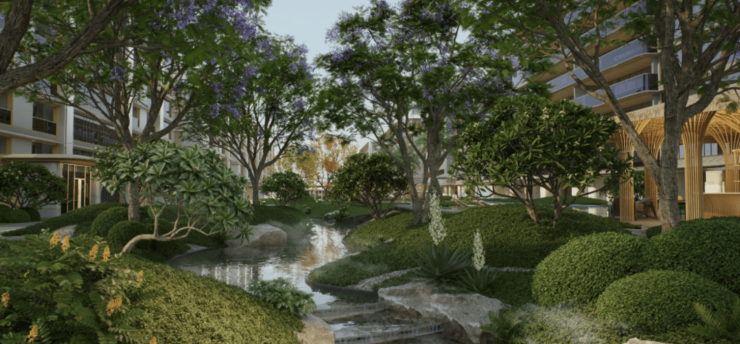 景观以“八景造园”为核心理念,将热带原生植被与东方造园手法相融。社区内规划溪谷花境、阳光草坪、叠石水景等八大景观节点,搭配凤凰木、三角梅等本土花木,四季有景、步步生趣。