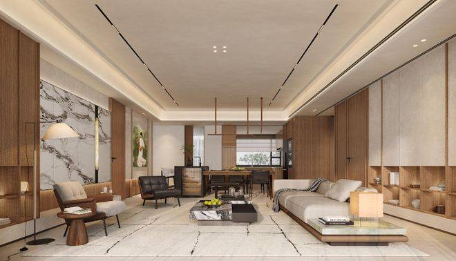 公区以海派为笔触,染现代之气韵,融汇成一方优雅生活的序章