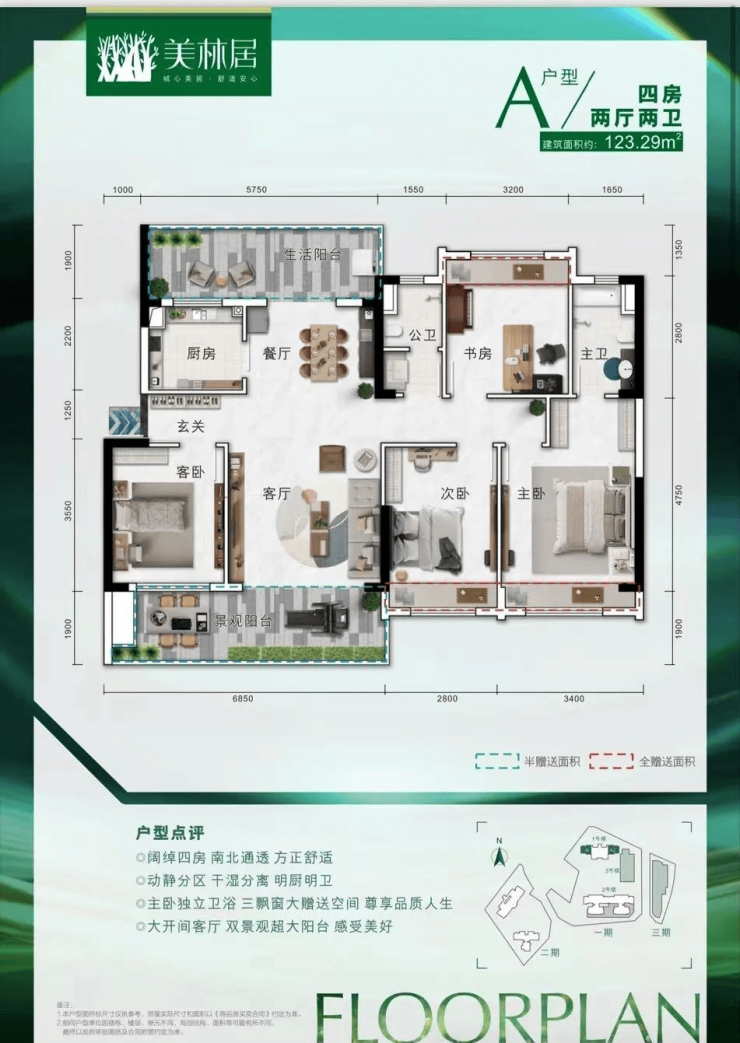 户型面积:建面82.74㎡-123.29㎡两房两厅一卫-四房两厅两卫