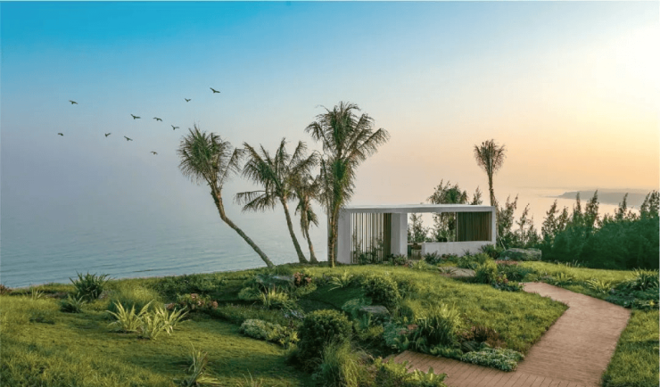 占位90米正南向海崖高地,270°瞰海视野,俯拾天地大境,与自然共鸣。