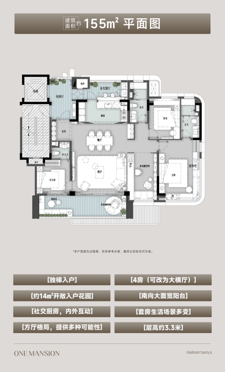 本户型图为标准层示意过程稿,所有图片、数据及文字仅供参考,交房尺寸及家具装修以合同约定为准;