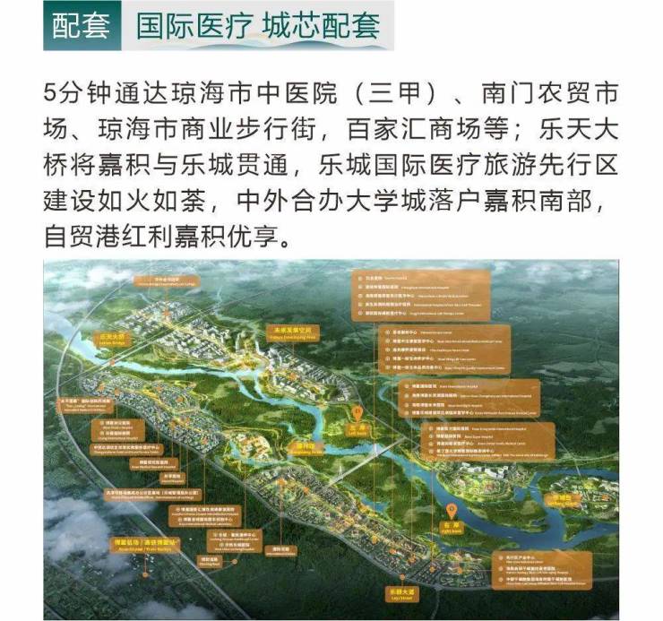 【外部配套】5分钟通达琼海市中医院(三甲)、南门农贸市场、琼海市商业步行街,百家汇商场等;乐天大桥将嘉积与乐城贯通,乐城国际医疗旅游先行区建设如火如荼,中外合办大学城落户嘉积南部,自贸港红利嘉积优享