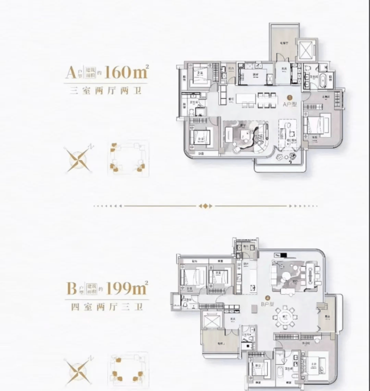 户型设计上,中粮铂悦壹号推出的宽景大平层户型超贴心,有 160㎡的三室两厅两卫、199㎡的四室两厅三卫和 240㎡的四室两厅三卫。不管是一家三口的温馨小家庭,还是三代同堂的大家庭,都能找到合适的房子。而且这些户型空间宽敞,布局合理。特别是宽景阳台的设计,在家就能将美丽的城市景观和自然景色尽收眼底,生活别提多惬意了。