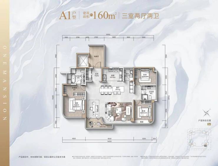 160㎡有横厅和竖厅两个版本,同时,有且仅有一个面积不大的室外阳台。