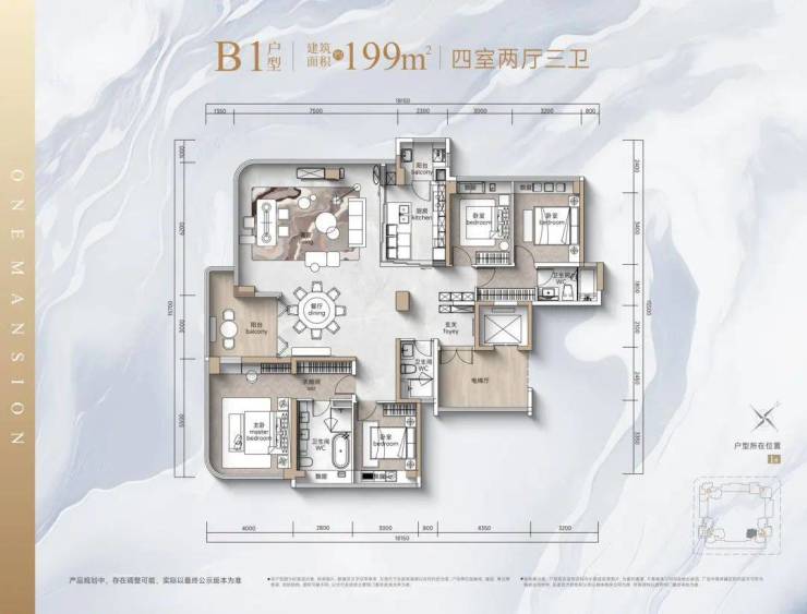 190㎡四房三卫户型也有两种户型,最大区分也是横竖厅的差别。