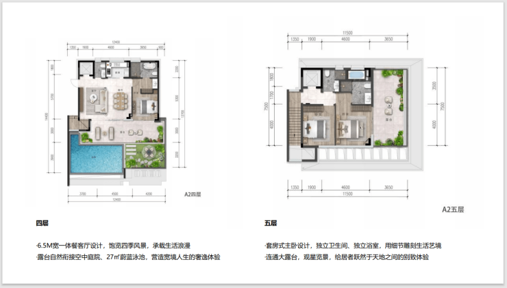 上叠建筑面积165㎡,3F2T3W,赠送164平米(含地下车库62平米,4楼庭院面积83平米以及5楼阳台28平米,共4层(负一层车库首层➕4层➕5层),室内层高3.3米,架空层以及地下车库挑高3.9米。