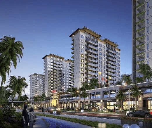 近揽东岸总部中央商务区、乐天城综合体、鸿港新贸城、海旅免税城等商圈,项目西北侧在建亚沙会体育中心,总部办公、商业、酒店、影院、体育赛事等高规格醇熟配套一应俱全。